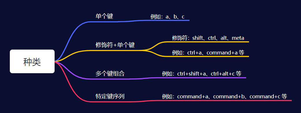 yarn add mousetrap使用 Mousetrap 的基本步骤包括引入库文件、绑定快捷键到回调函数,以及在回调函数中定义当快捷键被激活时所执行的操作。Mousetrap 提供了 .bind() 和 .bindGlobal() 方法来绑定快捷键,前者限制在特定元素上触发,后者则在整个文档范围内有效。
